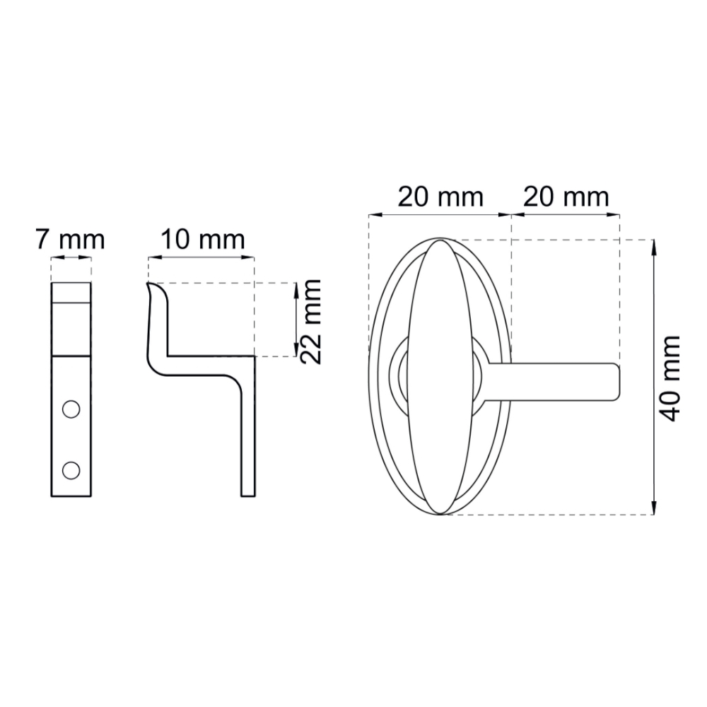 Vinduesknop i forniklet messing. Leveres med 7 mm krog til flad montering. Knoplængde 40 mm.