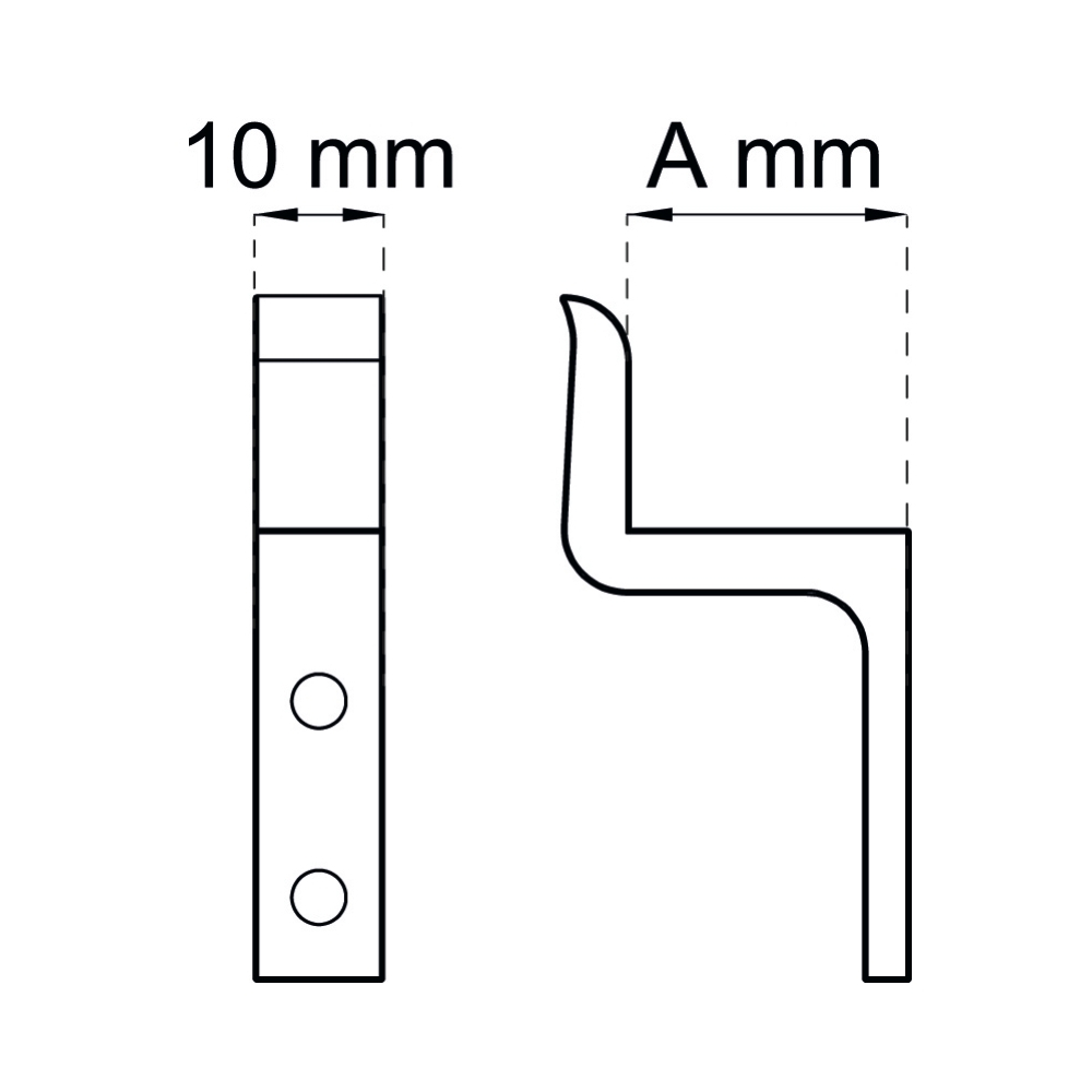 - A (mål fra ramme til indersiden af krogen): 10mm